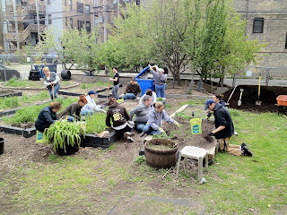 Last weekend, we unearthed the two fig trees that we had buried last fall to protect them from the Chicago winter. Michael, Ivy, and Evelyn cleared away the mounds of soil that covered the ply board roofs over the shallow trenches in which the trees had lain for the last few months. The trees emerged skeletal and leafless, their branches tipped with new growth that had the pale translucence of cave fish.